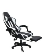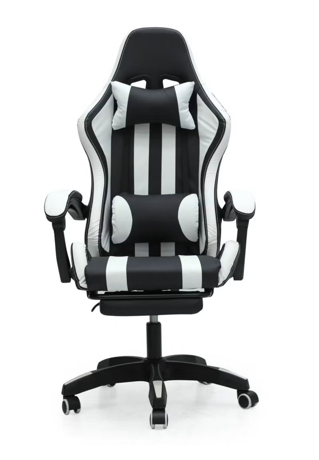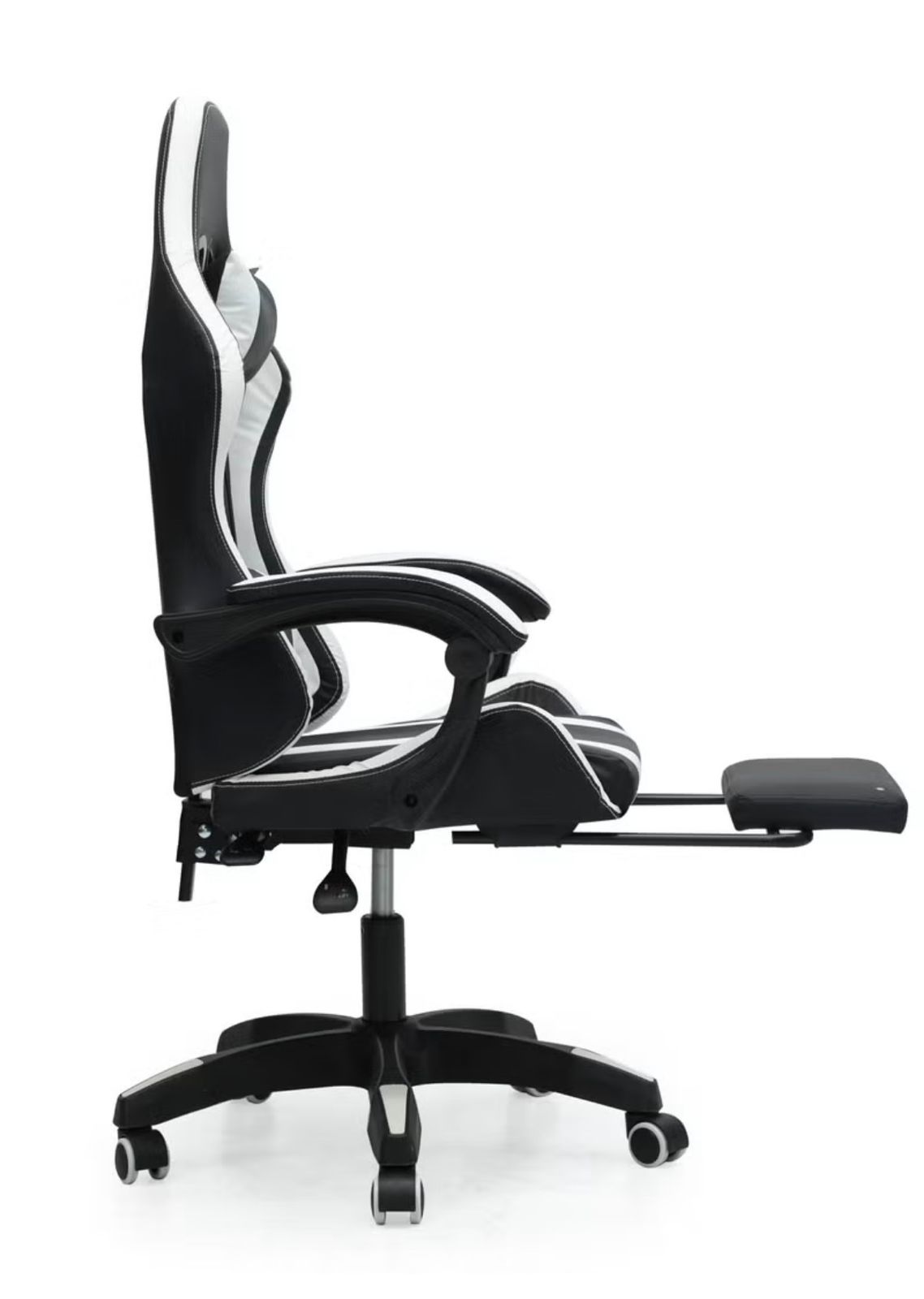 كراسي ألعاب كرسي كمبيوتر قابل للإمالة والارتفاع قابل للتعديل مع دعم للرقبة وأسفل الظهر ومسند للقدمين قابل للسحب (أبيض)