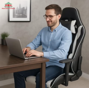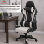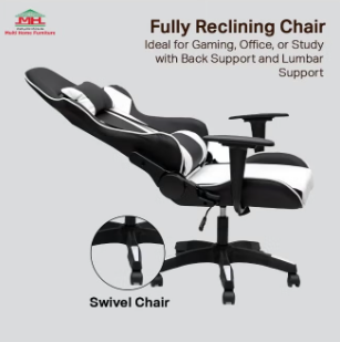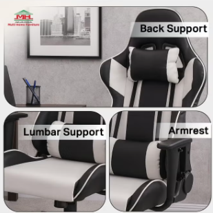 كرسي ألعاب منزلي متعدد الاستخدامات باللونين الأبيض والأسود | كرسي مريح بمسند ظهر مرتفع وقابل للإمالة مع مساند ذراعين ودعم للظهر قابل للتعديل | كرسي مكتب من جلد البولي يوريثين مناسب لأجهزة الألعاب ويوفر دعمًا ممتازًا للظهر.