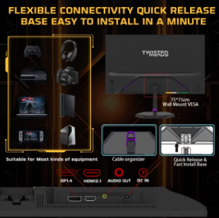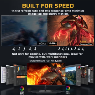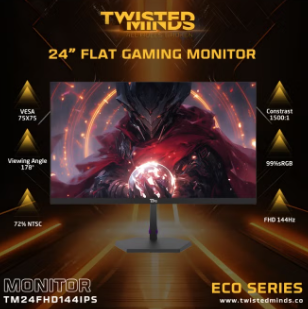 شاشة الألعاب TM24FHD144IPS من سلسلة TM Eco، 24 شاشة ELED IPS، دقة FHD، معدل تحديث 144Hz، زمن استجابة 1ms، مزامنة متكيفة، خالية من الوميض، مكبرات صوت مدمجة