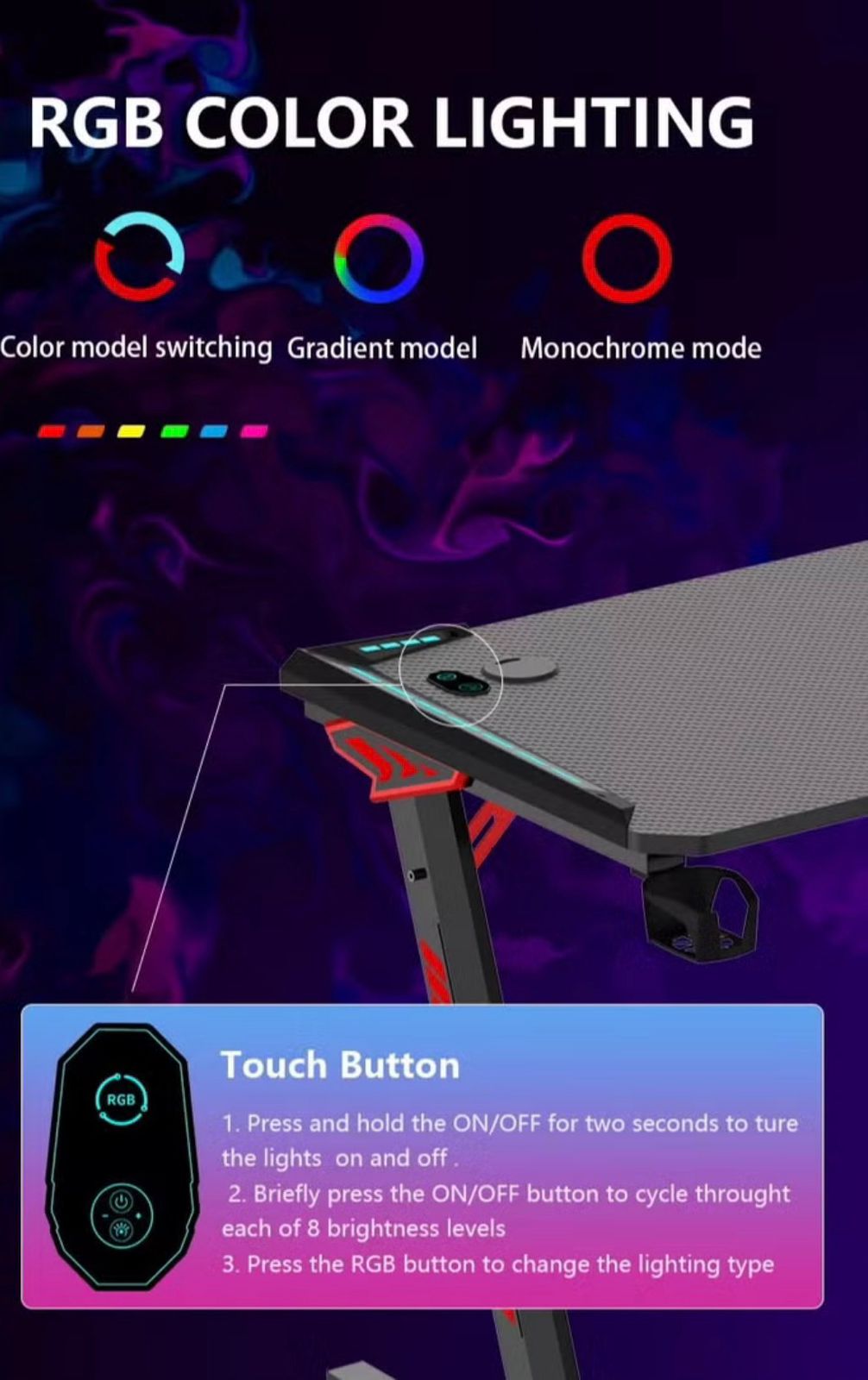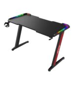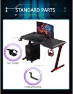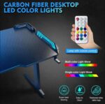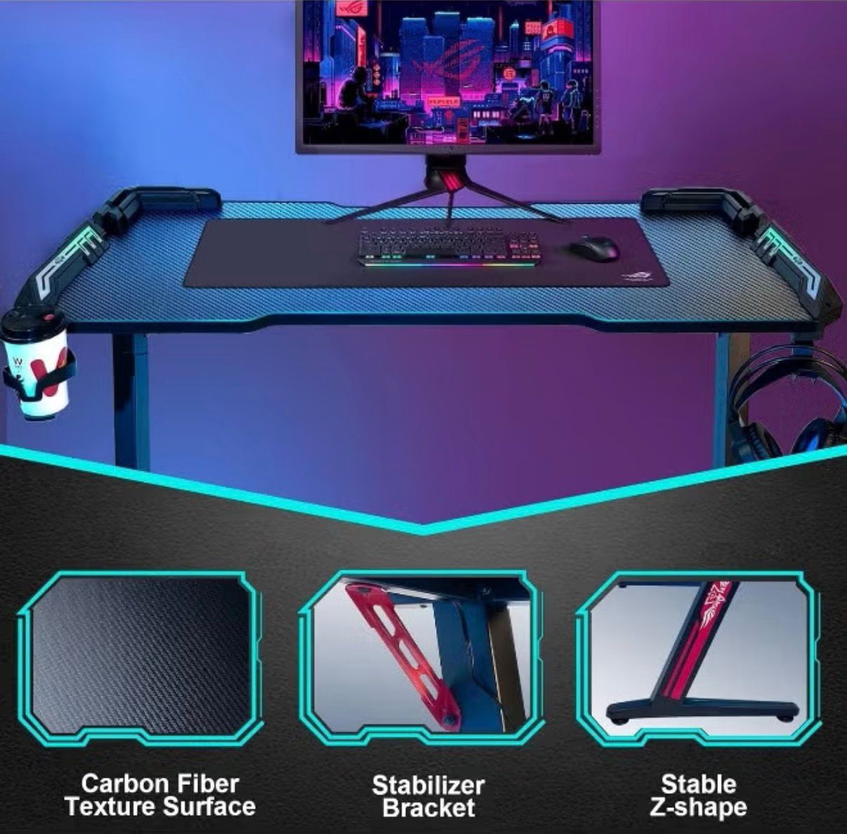 SKY-TOUCH Gaming Desk, Ergonomic Z-Shaped Computer Table for PC Workstation, Home and Office Use, with LED Lights, Carbon Fiber Surface, Cup Holder, and Headphone Hook