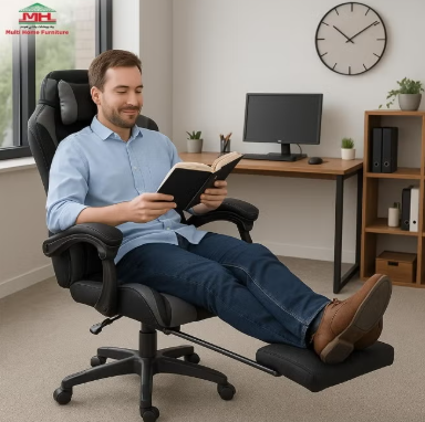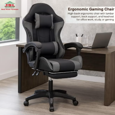 Multi-Purpose Home Gaming Chair in Black and Grey | Comfortable High-Back Reclining Chair with Footrest and Adjustable Armrests | Sport-Style Office Chair with Lumbar and Head Support, Ideal for Gaming Setups